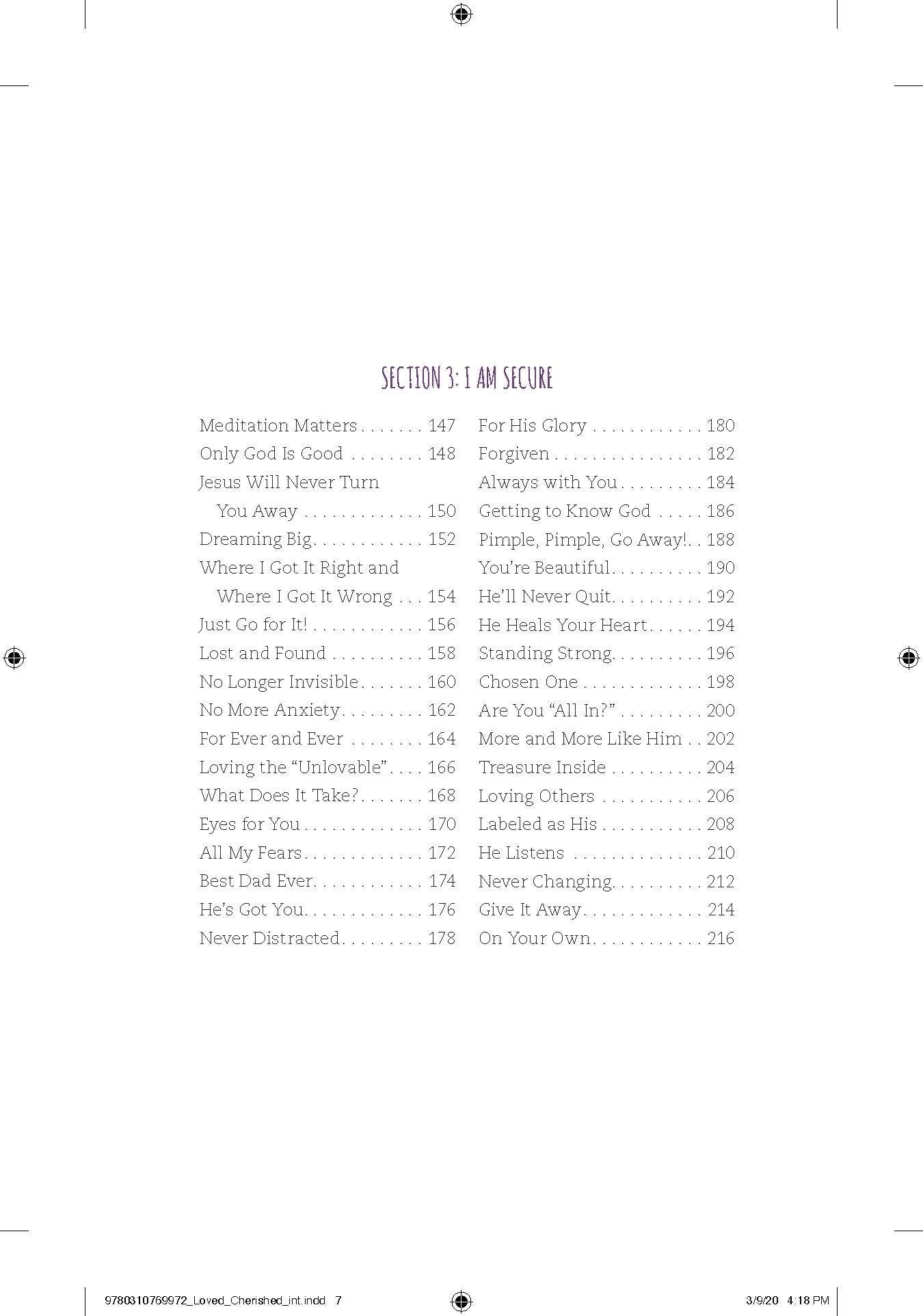 With a beautifully decorated cover, ribbon marker, and lovely page illustrations, this book of devotions will make the perfect gift for any girl in your life who deserves to know she is cherished, treasured, valuable, and worthy.
