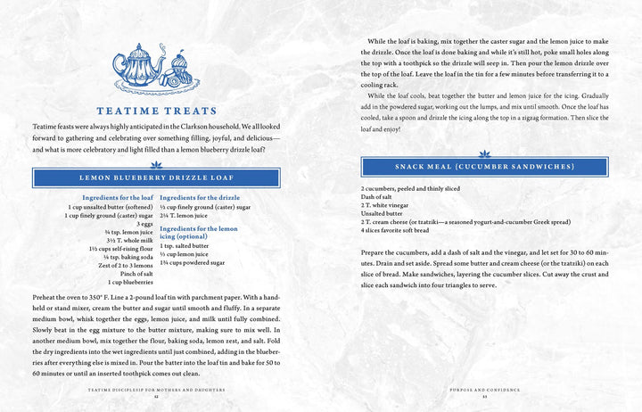 Establish a Legacy of Love Life is sweeter when a hot pot of tea and a lovely talk of faith are shared between a mother and her daughter! From author and podcast host Sally Clarkson comes this keepsake guide filled with simple moments that create lasting heart-connections centered on friendship and discipleship. When you prioritize this sacred work of fellowshipping with your family, you’ll also grow in love and wonder for the God who has woven your shared stories into the tapestry of His big-picture plan. Within these beautiful pages, you’ll find themed teas and interactive offerings to gently guide and invest in your daughter over cozy treats and thoughtful discussions about seasons of faith, godly womanhood, and more. Modeling your faith becomes mentoring her heart when you welcome open conversation, earnest listening, and sincere prayer. Teatime Discipleship for Mothers and Daughters will help you steep together in Scripture as you make meaningful time for God and for each other.