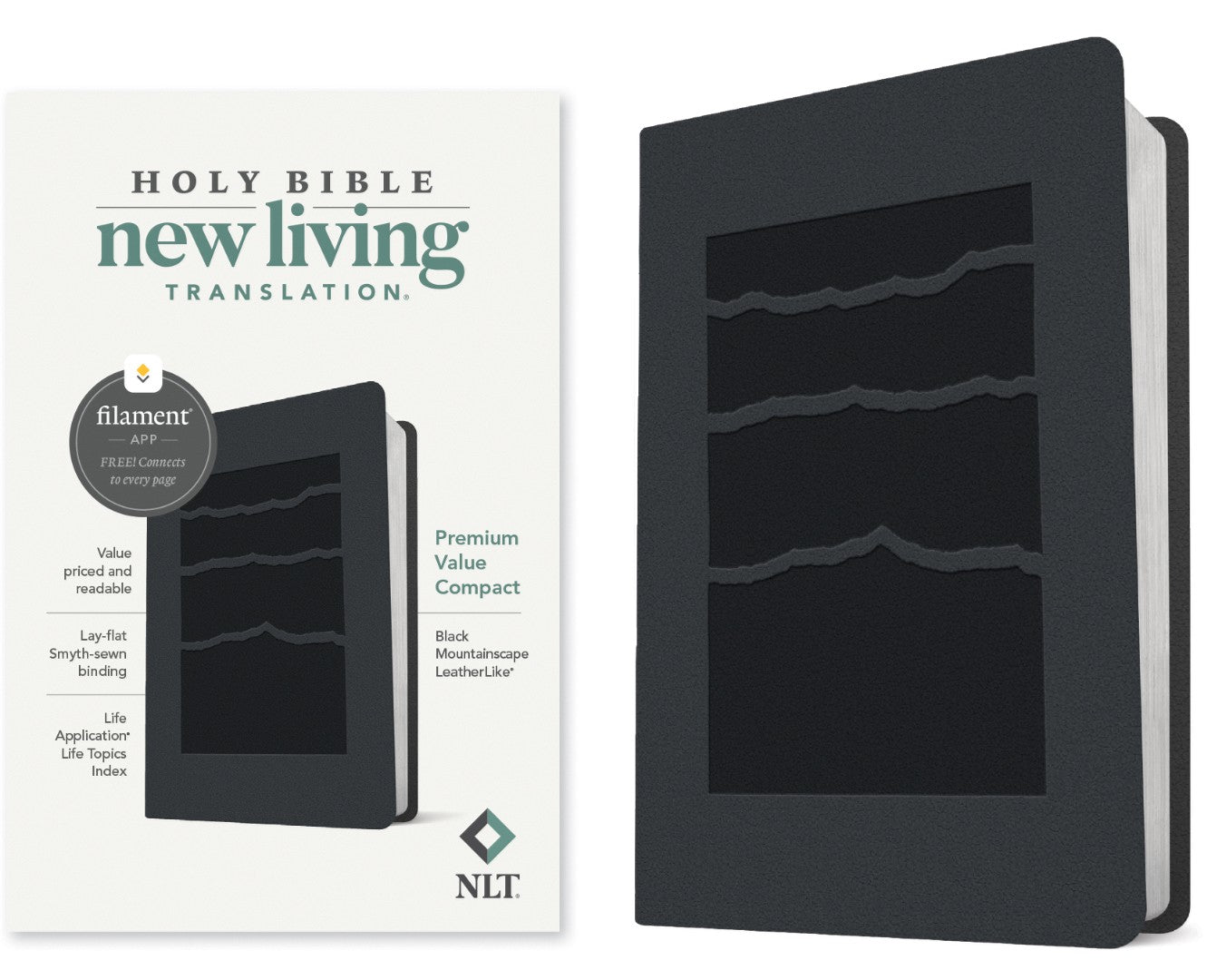 The text Bible reimagined. The new NLT Premium Value Compact Bible, Filament-Enabled Edition has readable text, an attractive layout, and an affordable price in a thin, easy-to-carry size. And while it has the same low price of basic text Bibles, the NLT Premium Value Compact offers much more. It not only features a bold new design and the trusted and much-loved New Living Translation (NLT) but also includes the groundbreaking Filament Bible app. This app enables you to use your mobile phone or tablet to connect every page to a vast array of related content, including study notes, devotionals, interactive maps, informative videos, and worship music. The Filament Bible app turns this Bible into a powerful study and devotional experience, offering more to expand your mind and touch your heart than you can possibly hold in your hand. And there is no additional cost for the Filament Bible app. No additional purchase. No additional size or weight. Of course, you can use this Bible without the app, but when you want to dig deeper, grab your phone or tablet and open the Filament Bible app. It’s so easy to use.