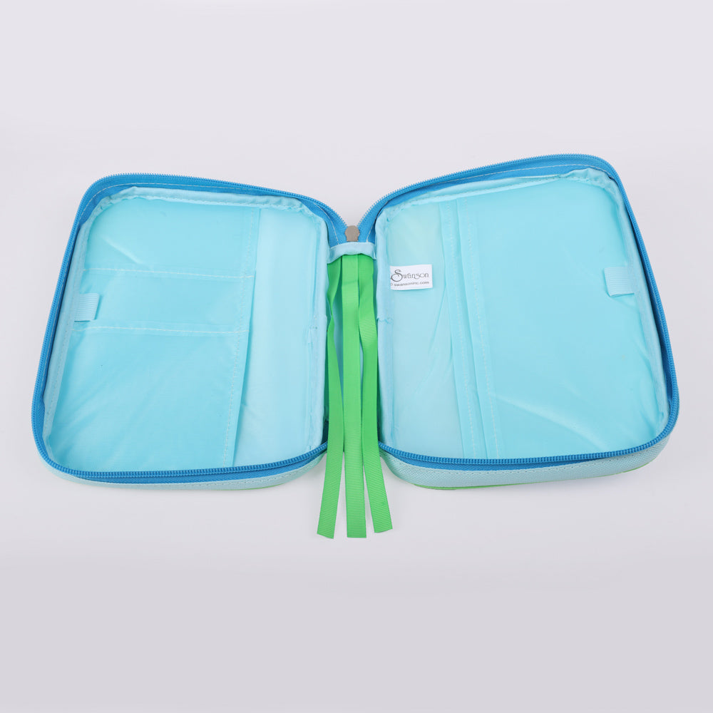 This medium-sized cover (6.625″ L x 1.75″ W x 9.625″ H) is crafted from durable canvas and built for daily use at Sunday School, VBS, or home study. It includes built-in bookmarks to keep their place, interior pockets for storing notes or small treasures, and a pen loop for easy access during Bible study sessions.