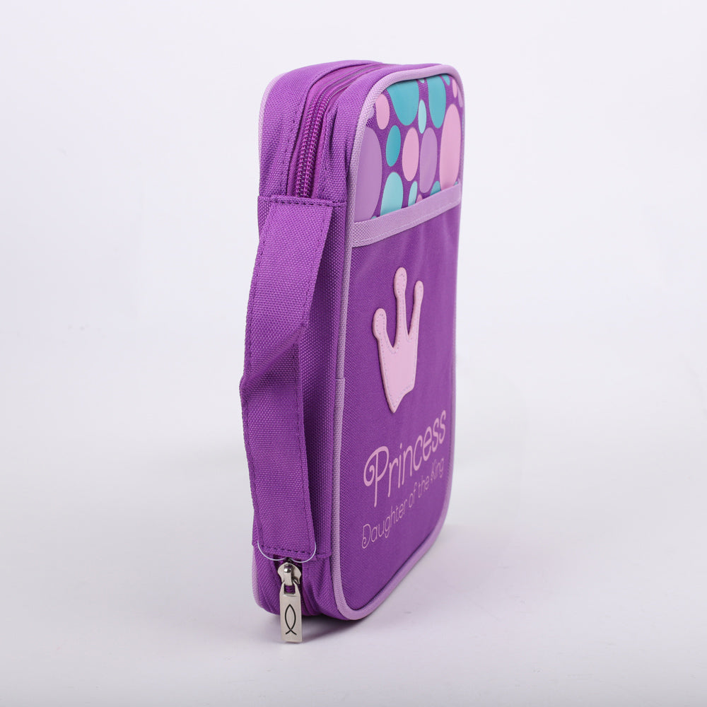 Celebrate your identity as a daughter of the King with this charming Princess Bible cover. Designed in a vibrant purple canvas, it’s sprinkled with playful pink and blue polka dots and features a crown on the front with the inspiring phrase: “Princess – Daughter of the King.” Whether it’s used for Sunday school, youth group, or daily devotionals, this cover is a sweet reminder of your royal worth in God’s eyes.