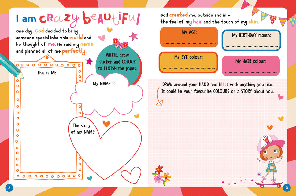 Write, doodle and pray your way through this confidence-building activity book, with Bible verses and inspiring prayers to strengthen your faith. Use the stickers and the mirror to be creative and appreciate God’s ultimate creation – YOU!