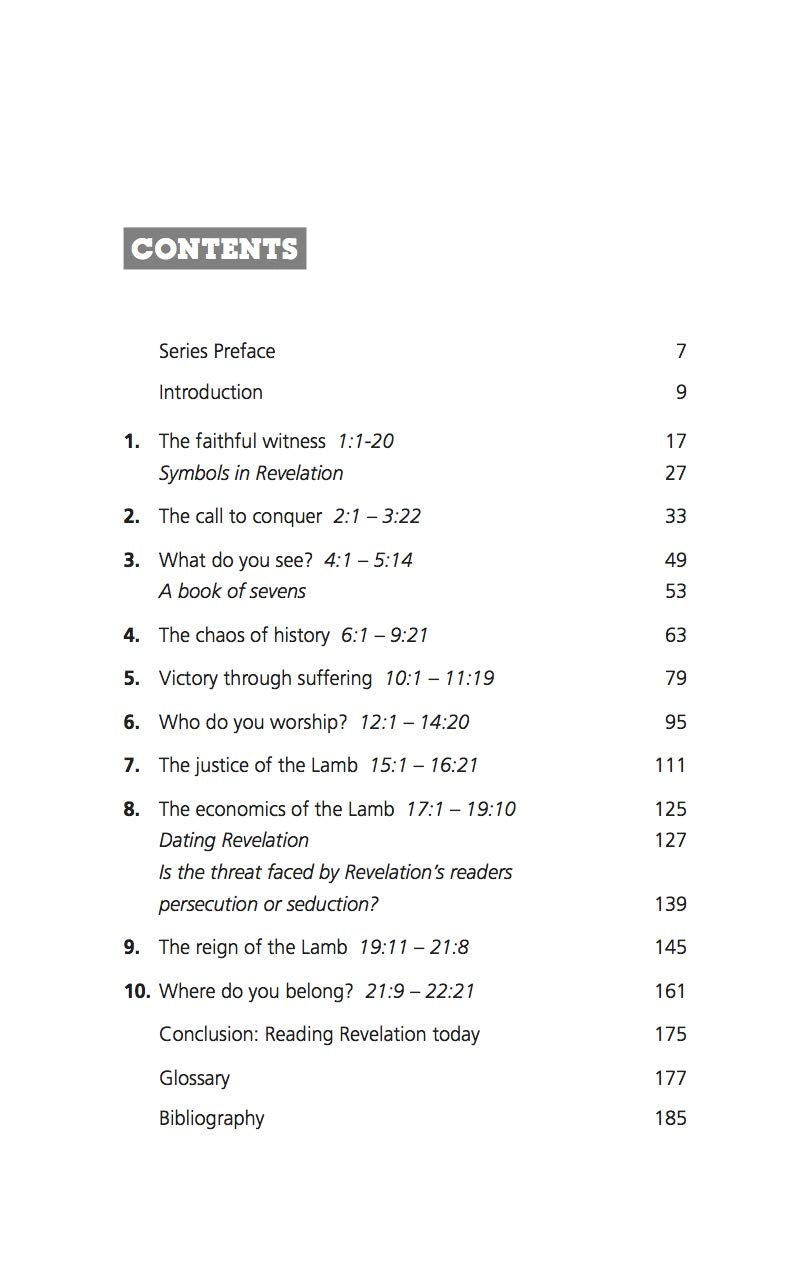Many Christians are confused by the book of Revelation. It moves from strange and disturbing images to warm and practical encouragement; from the fires of Hell to wonderful pictures of a glorious eternity. And yet the message of the final book of the Bible is both clear and simple. Despite everything that is going wrong with our world, God remains in control. And when we see history, our present, and our future from heaven's perspective, it will encourage us to trust God and remain faithful to the end. This accessible, absorbing expository guide opens up this book for new and mature Christians alike. It is more applied than a typical commentary, making it a great resource for personal devotion, as well as useful for leading small group studies or sermon preparation.